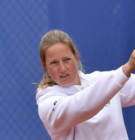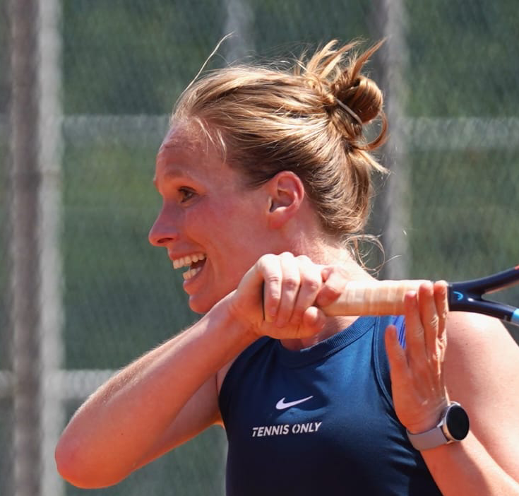 Jarenlang aanvoerder van dit vriendenteam en het brein van ons team, en dat is te merken als je haar op de baan bezig ziet. Als een soort schaker doorziet ze binnen enkele games het spel en de zwaktes van haar prooi, en slaat dan met precisie die alleen een tandarts kan hebben keer op keer de bal precies daar waar de tegenstander die niet hebben wil.